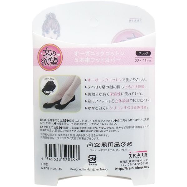 女の欲望 オーガニックコットン 5本指フットカバー ブラック
