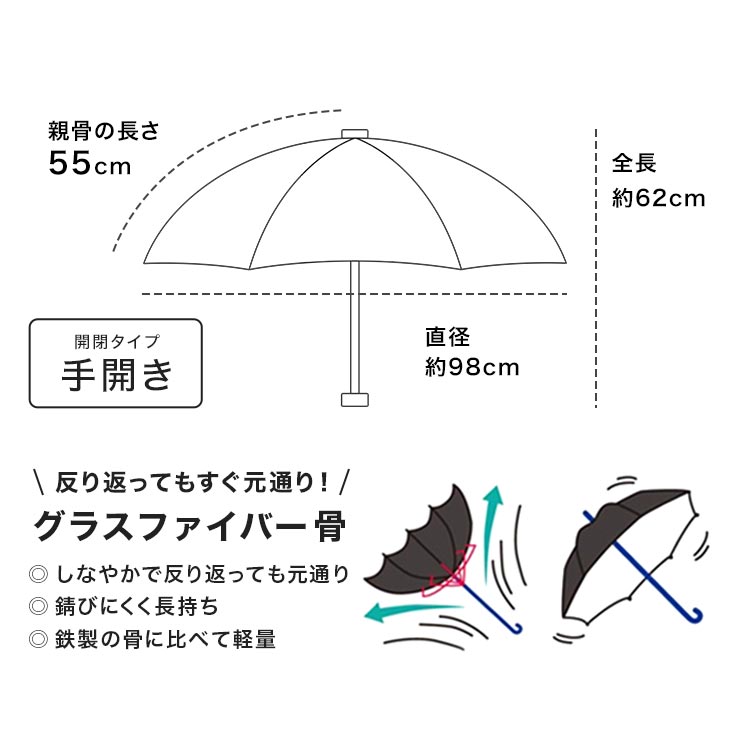 Details 突然の雨に大活躍の折りたたみ傘[55cm]です。